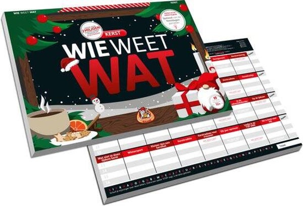 Speciaal voor alle fans van kerst heeft het populaire spel Wie Weet Wat nu ook een kerst-editie. Dit blok bevat 32 kerstige categorieën waarvan je het zelfs op de koudste dagen warm krijgt. Kun jij een ‘onwelkome kerstgast’, ‘kerstliedje’ en ‘iets wits’ bedenken met een W? Zorg dat je de categorieën vult voordat de timer afloopt en bedenk creatieve antwoorden, want hetzelfde invullen als iemand anders kost je behoorlijk wat punten!