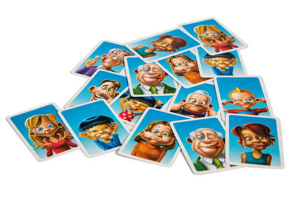 Grappig en leerzaam spel voor kinderen en hun ouders. Vraag kaarten aan elkaar door gekke gezichten te trekken. Heeft iemand een gevraagde kaart niet, dan steekt hij zijn tong uit. Wie de meeste setjes heeft verzameld, wint dit knotsgekke spel. In dit hilarische spel leren kinderen op een speelse manier gezichtsuitdrukkingen te maken, te benoemen en te gebruiken. Door de beperkte speelduur al voor heel jonge kinderen geschikt! Deze nieuwe versie heeft compleet nieuw artwork! Tactische tips Probeer goed op te letten als andere kinderen gezichten trekken. Je weet dan welke kaarten ze in hun handen hebben. Richt je steeds op 1 setje, zodat je zeker weet dat de anderen die niet in hun handen hebben en jouw zuurverdiende kaarten plotseling van je afpakken.